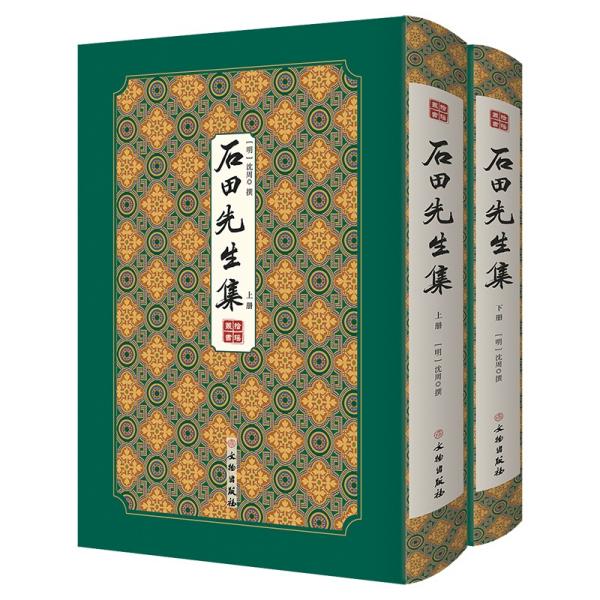 此书所据为陈仁锡辑刻《石田先生集》,系沈周殁后百余年新编的首部诗文集。按体分类,辑诗凡一千三百余首,涵括沈周早中晚各期作品,于今存诸刻中收诗最全面。据陈、钱二序,知为陈仁锡“购《稿》”之余,钱允治访于故藏家谋广而成。是本首尾完备,书品上佳,版面洁净,少漫漶不清,展卷赏心悦目,于研究、赏鉴两相宜。 沈周(14