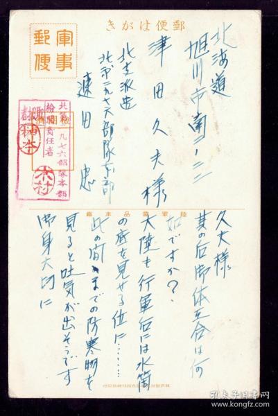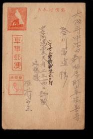 作者 日语 秋聲绘画 大日本印刷株式会社发行出版1949 9品北平邮政历史文化 0.8x0.5实际军事邮便明信片收藏邮品 发信中支派遣月第七三九五部队东芝直治 收件日本兵庫县武庫郡鸣尾村东芝东,