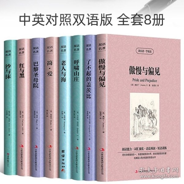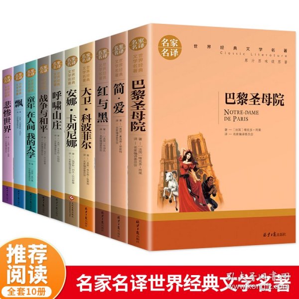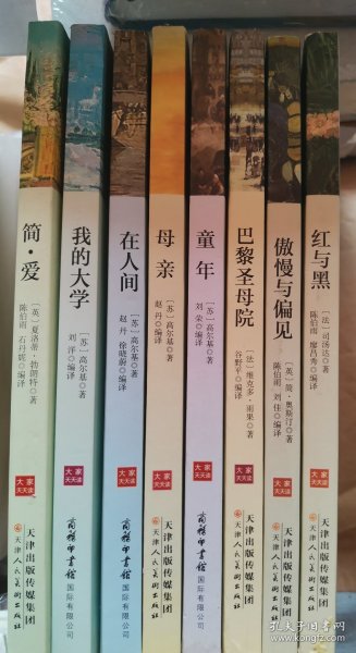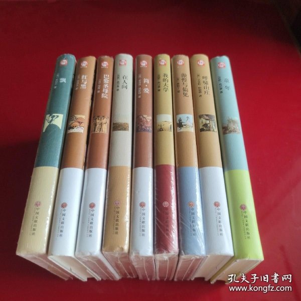 翰墨文库系列9本精装:飘,红与黑,巴黎圣母院,在人间,简爱,我的大学,傲慢与偏见,呼啸山庄,童年
