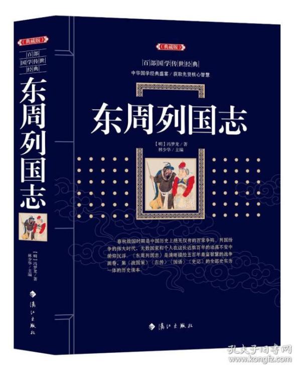 《东周列国志》是继《三国演义》之后成就最高、影响最大的一部历史演义小说,由清人蔡元放在明末文学家冯梦龙编撰的《新列国志》基础上略加删改而成。该书讲述了西周末年至秦始皇统一六国五百多年间的历史故事,展现了春秋五霸、战国七雄由纷争趋向统一的历史进程,结构严谨合理,行文流畅自然,其时间跨度之大,涉及人物之多,都是前所未有的。作者综合剪裁《左传》、《国语》、《国策》、《史记》等书,旁参
