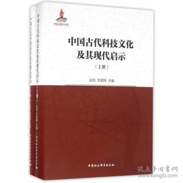 汝信、李惠国主编的《中国古代科技文化及其现代启示(上下)(精)》梳理出中国历史上科学技术文化发展的脉络及其特点;通过选取对数学、天文学、农学、医药学和工程技术等学科领域发展的研究,探讨中国古代科学技术文化具有怎样独特的认识论、方法论和价值取向;揭示传统文化中的儒家文化、道家文化、佛教文化和科学技术文化的关系;考察中外文化交流对我国科学技术发展的影响,这些方面研究可以进一步昭示我