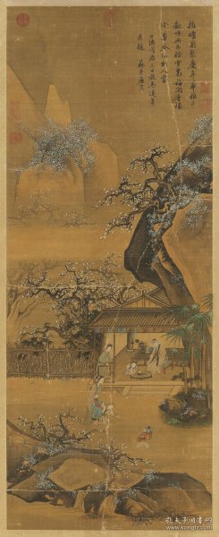 因先世衡山人,故号衡山居士,世称“文衡山”。其山水、人物、花鸟无不精通,是“吴门画派”创始人之一,与沈周、唐寅、仇英合称“明四家”。文征明的绘画兼善山水、兰竹、人物、花卉诸科,尤精山水,自成一格。画风呈粗、细两种面貌。粗笔源自吴镇,兼取赵孟炳古木竹石法,笔墨苍劲淋漓,又带干笔皴擦及书法的飞白,于粗简中见层次和韵味;细笔取法赵孟頫、王蒙,布景繁密,较少空间纵深,造型规整,时见棱角和变形