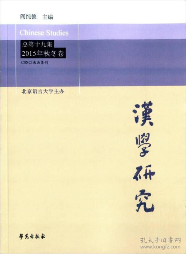 《汉学研究(总第十九集 2015年秋冬卷)》包括维也纳论坛:中欧文化对话(二);汉学的演进与中外文化之约;16至18世纪中欧地图学史领域的文化交流研究;中欧关系中的人性法国汉学研究专辑(中法建交50周年特别策划之四);中国诗歌艺术和诗律学;论殷历;沙畹《史记》翻译过程中对早期中国历法与乐律的研究;戴密微:东方语言学院与汉学研究;禁烟运动挽救国民党统治的万灵药?;18世纪法国作家