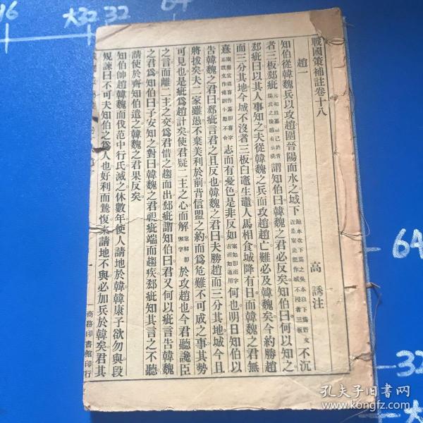 《战国策》是汇编而成的历史著作,作者不明,非一时一人之作。其中所包含的资料,主要出于战国时代,包括策士的著作和史臣的记载,汇集成书当在秦统一以后。原来的书名不确定,西汉刘向考订整理后,定名为《战国策》。总共三十三篇,按国别记述,计有东周一、西周一、秦五、齐六、楚四、赵四、魏四、韩三、燕三、宋、卫合为一、中山一。以策士的游说活动为中心,反映出这一时期各国政治、外交的情状,品相好,保证正版图书