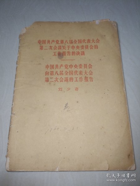 作者 刘少奇中国共产党第八届全国代表大会第二次会议关于中央委员会的工作报告的
