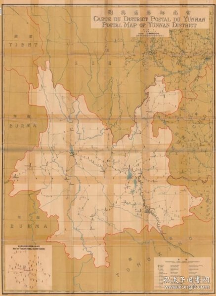 【提供资料信息服务】民国《云南邮务邮区舆图》(原图高清复制)昆明安宁富民宜良嵩明禄劝寻甸曲靖沾益宣威富源罗平师宗会泽玉溪澄江通海新平元江昭通水富鲁甸巧家盐津大关永善绥江镇雄威信保山腾冲施甸龙陵昌宁丽江永胜华坪玉龙宁蒗普洱思茅镇沅江城孟连澜沧西盟临沧凤庆云县沧源德宏楚雄双柏牟定永仁元谋武定禄丰红河蒙自个旧开远建水石屏泸西绿春元阳红河金平文山马关丘北广南富宁景洪勐海勐腊县,云南邮政邮路重要史料老地图