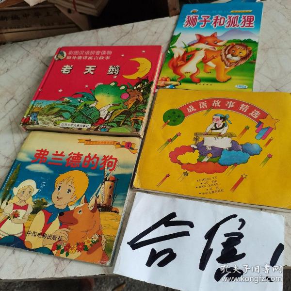 上面是4本儿童画书的合售价格:狼外婆讲寓言故事 老天鹅(江苏少年儿童出版社)、狮子和狐狸(远方出版社)、成语故事精选(江苏少年儿童出版社)、弗兰德的狗