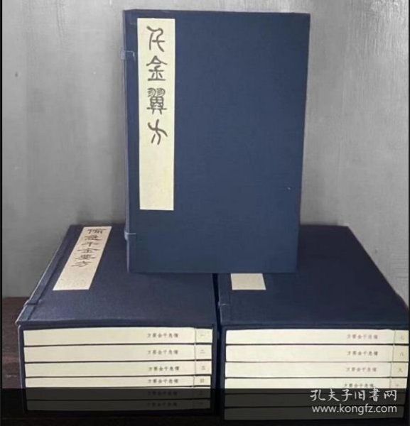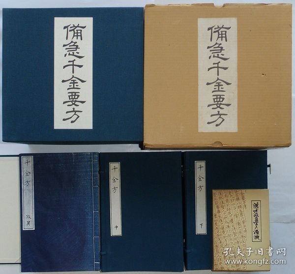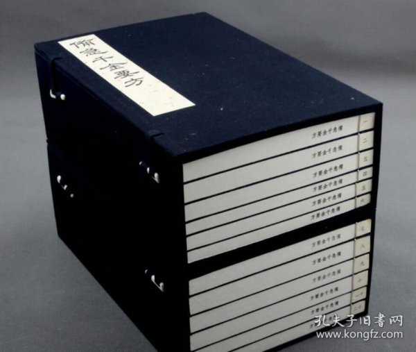 全套大开本,成书统一尺寸长29厘米,宽19厘米。分别用手工宣纸和仿古宣纸制作,蓝色花绫做书衣,耐折耐磨。手工宣纸本100套,仿古宣纸本35套 。 其中《备急千金要方》2函12册《千金翼方》1函8册