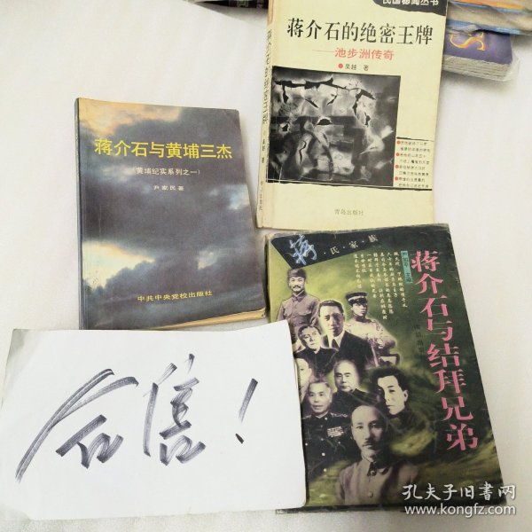 上面是3本书合一起的总价格:蒋介石的绝密王牌——池步洲传奇(吴越著/青岛出版社)、蒋介石与结拜兄弟(严如平主编/团结出版社)、黄埔纪实系列之一·蒋介石与黄埔三杰