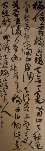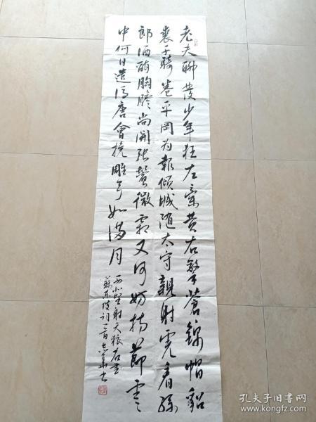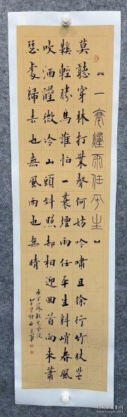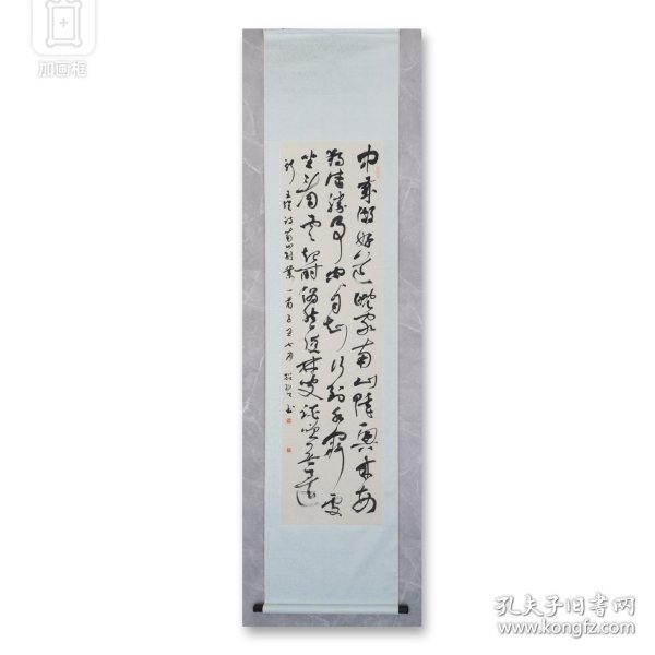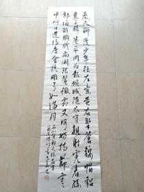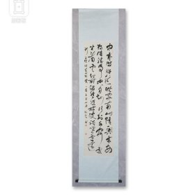 作者 贺绍碧展览书法中岁颇好道(画芯46*172,装裱60*260)。贺绍碧,1981年生,别名清华精舍、燕园、半闲山馆。中国书法家协会会员、中国民主促进会会员、民进开明画院河南分院常务理事、河南省书画院特法家、焦作市书法家协会常务理事。