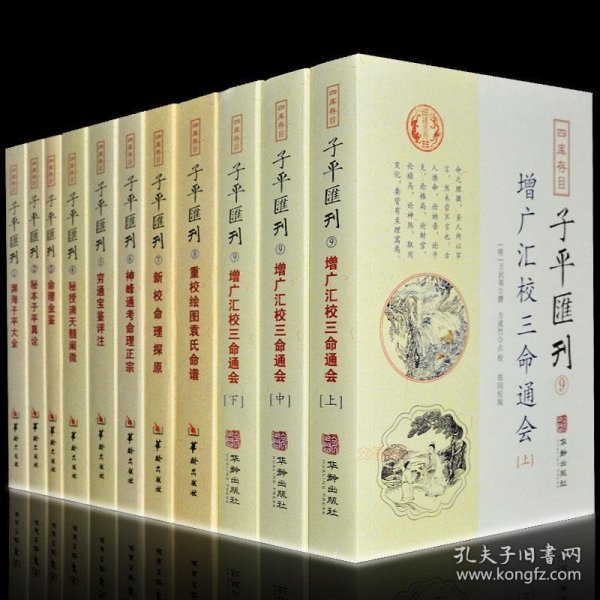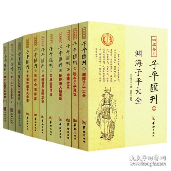 四库存目子平汇刊 1:渊海子平大全 2:秘本子平真诠 3:命理金鉴 4:秘授滴天髓阐微 5:穷通宝鉴评注 6:神峰通考命理正宗 7:新校命理探原 8:重校绘图袁氏命谱 9:增广汇校三命通会(上中下)