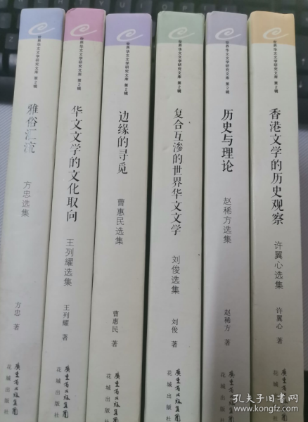 (香港文学的历史观察:许翼心选集) , (雅俗汇流:方忠选集 ) , ( 边缘的寻觅:曹惠民选集 ) , (历史与理论·赵稀方选集 ), (复合互渗的世界华文文学·刘俊选集) ,(华文文学的文化取向 : 王列耀选集 ) 6册合售