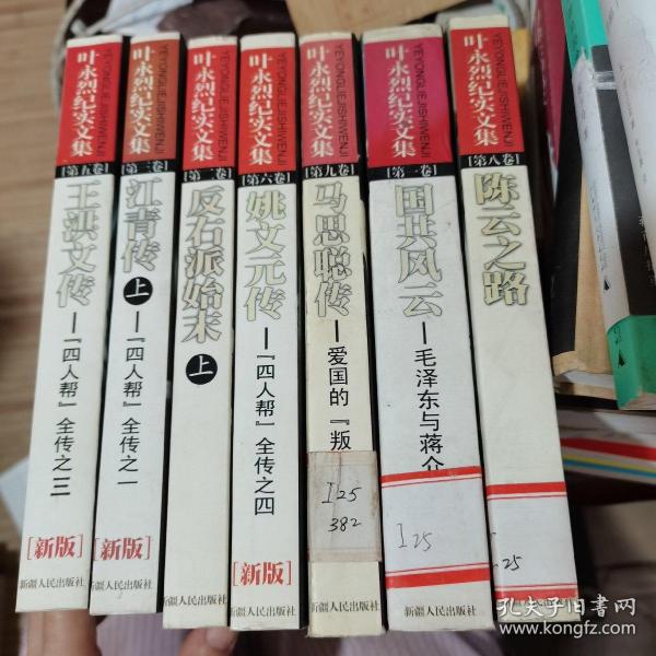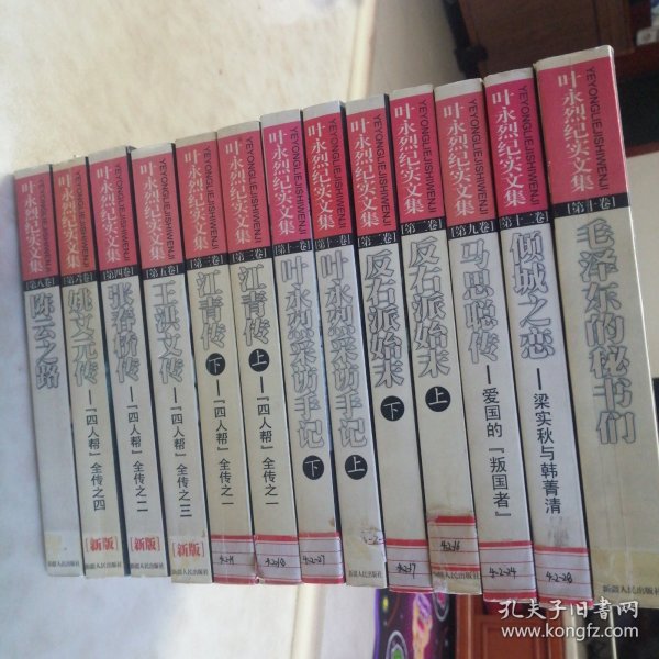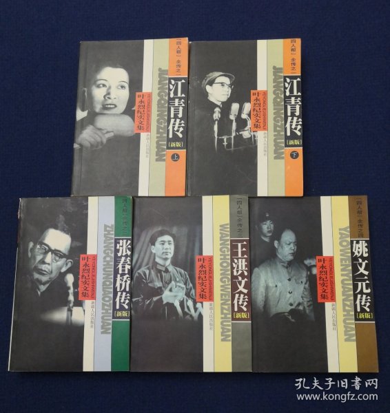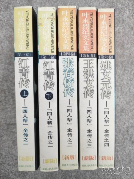 叶永烈纪实文集,2000年一版一印,全五册,之一江青传上下、之二张春桥传、之三王洪文传、之四姚文元传