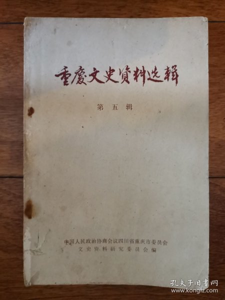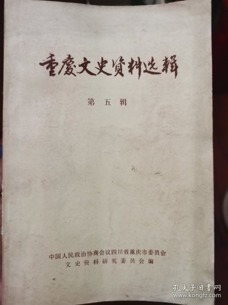 出版社 中国人民政治协商会议四川省重庆市委员会文史资料