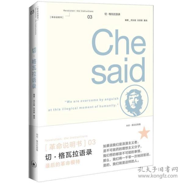 《革命说明书:切·格瓦拉语录》是赤色战士切格瓦拉的纪念传记。他死于暗杀,是一个神话般的自我流放的赤色战士,被视为所有帝国主义者的不共戴天之敌。他死后被宗教般的祭奠,被一切怀揣着革命理想的青年奉为偶像,成为一个介于神话和童话之间的英雄。他甚至被奇妙地艺术化了,成为20世纪象征某种纯粹力量的波普符号,一个性感的圣徒。至今,仍没有哪个反战集会上没有印有格瓦拉头像的T恤,没有哪一次大规