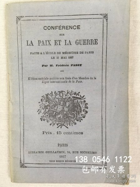 出版社 Passy, Frederic, Conference sur la paix et la guer