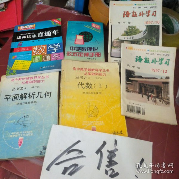 上面是6本书合一起的总价格:小甘高中数学直通车(漓江出版社)、中学数理化公式定律手册(64开本/成都出版社)、语数外学习高中版1997年10(编辑部)、语数外学习高中版1997年12(编辑部)、高中数学辅教导学丛书——从基础到能力丛书之3代数2(供高二年级使用)、高中数学辅教导学丛书——从基础到能力丛书之4平面解析几何(供高二年级使用)