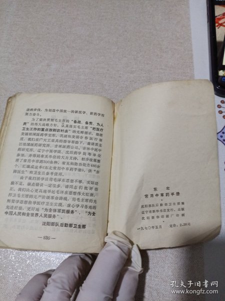东北常用中草药手册(8品64开语录版部分书页有水渍皱褶扉页录昆明市卫生局革命委员会“下乡光荣”1974年章字参看书影1970年7月版816页第545-640页收录中草药彩图96幅)59483
