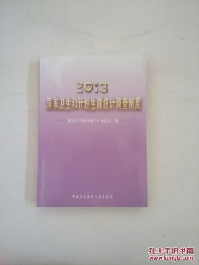 《2013国家卫生和计划生育统计调查制度》由全国卫生资源与医疗服务调查制度、全国卫生监督调查制度、全国疾病控制调查制度、全国妇幼卫生调查制度、全国新型农村合作医疗调查制度、计划生育统计报表制度、卫生和计划生育信访统计报表制度、相关法律法规及文件、其他相关资 料等9个部分组成。7套调查制度包括经国家统计局批准(或备案)的102个调查表及其说明等。