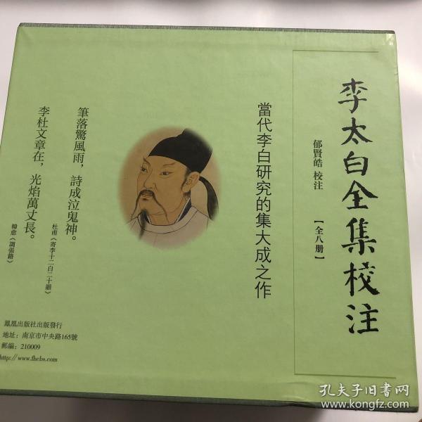 李白全集校注(全8册)共计8本,布面精装,适合收藏,当代李白研究的集大成之作,郁贤皓先生的总结建立在版本、考据、义理之上,继往开来,具有重要的学术价值和文献意义。本次整理,参校元萧士赟补注《分类补注李太白诗》,明郭云鹏重刊《分类补注李太白集》,明胡震亨《李诗通》,宋本《李太白文集》,王琦《李太白文集辑注》,《景宋咸淳本李翰林集》等及《河岳英灵集》并精心出校,保证能够成为接近历史真实的李白作品全集