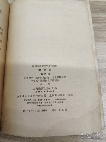 出版社 北京师范学院中文系现代文学教研室