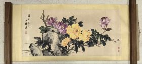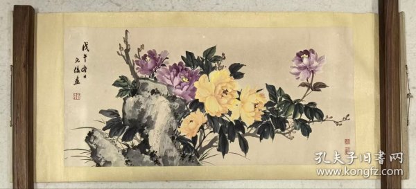 作者 【常州乡贤,民上书画名家~戴元俊先生】精品《富贵牡丹》,原裱横幅,品相如图。