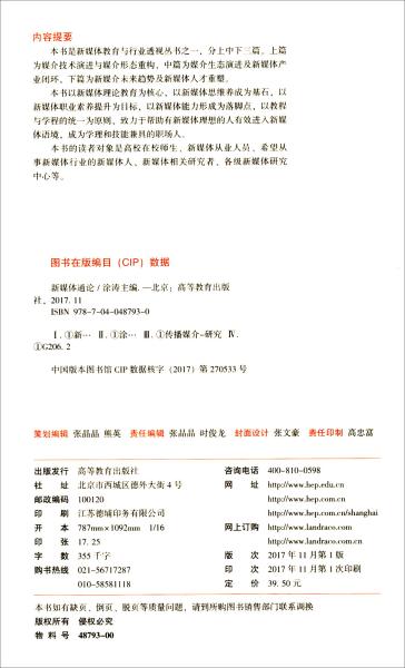 涂涛、赵剑、郭好、王命洪 编 / 高等教育出版社 / 2017-11 / 平装