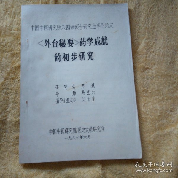 出版社 中医研究院医史文献研究所
