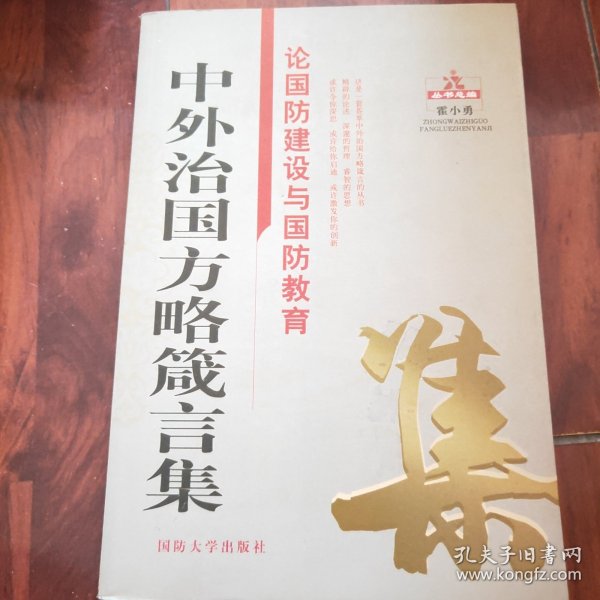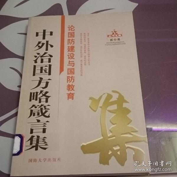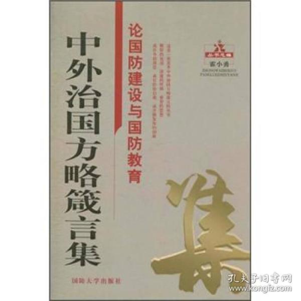 《中外治国方略箴言集:论国防建设与国防教育》能从更宽的工作领域和更加丰富的内容上为读者提供方便,为您的阅读提供一个精细的坐标,为您的工作和事业提供有益的帮助。古今中外治国方略的箴言,反映的是人类思想文化的精髓,是人类社会实践活动的科学总结,也是人类文明薪火相传的历史脉动和精神财富。