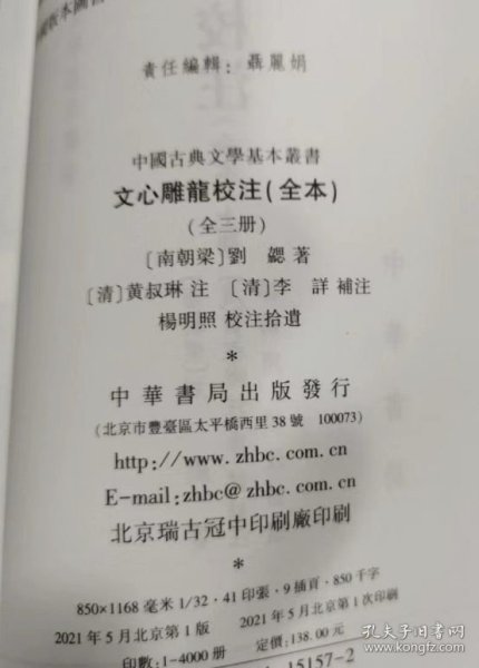 文心雕龙校注(全本)全三册--中国古典文学基本丛书 3I15c 版次更新不同步 以实际收到书为准