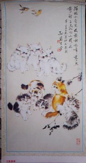 作者 06【】花鸟画《猫趣图》一幅,45厘米//68厘