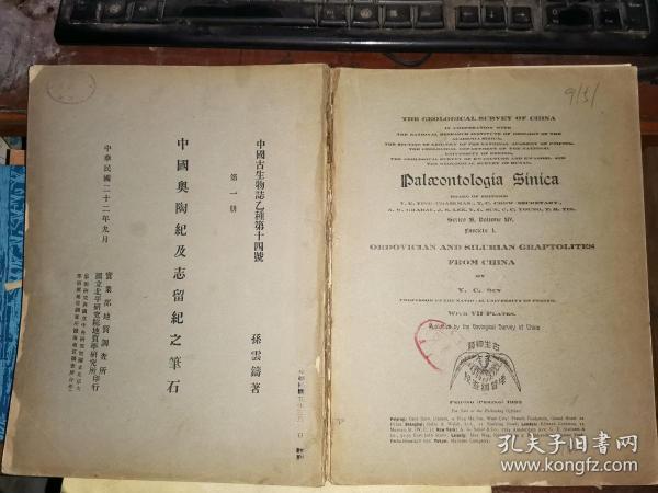 出版社 实业部地质调查所 国立北平地质学研究所