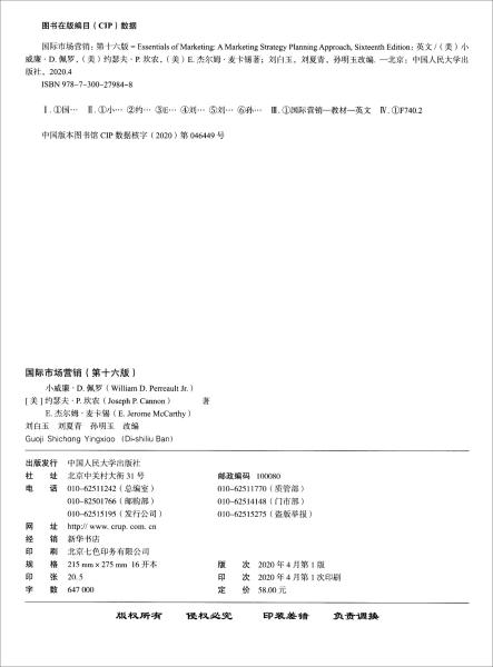 [美]小威廉·佩罗(William Perreault Jr.)、约瑟夫·P·坎农、E·杰尔姆·麦卡锡 著;刘、刘夏青、张杰 编 / 中国人民大学出版社 / 2014-05 / 平装