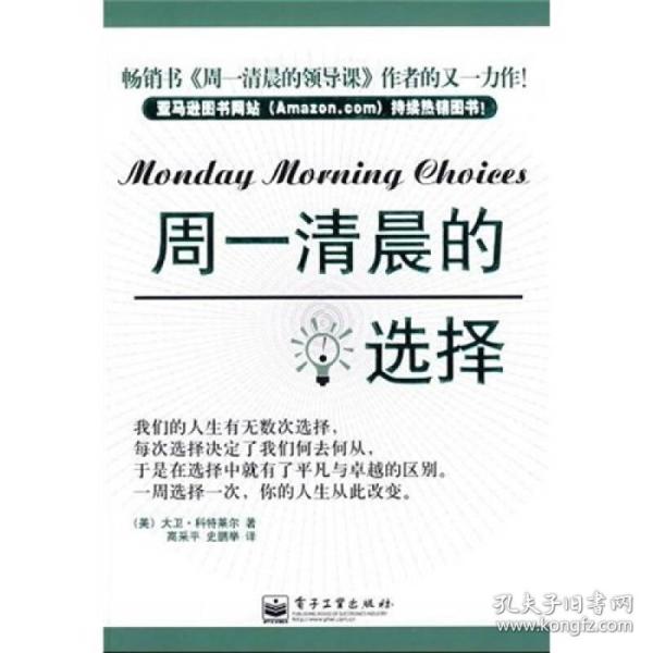 正确选择,走上成功之路你的人生将从以下这三类选择开始改变:性格选择将会决定你成为什么样的人。大卫?科特莱尔将会告诉你如何避免成为被动者,如何克服前进道路上的障碍,告诉你如何做出诚信选择,凭良心办事。,当你在通往成功的道路上继续前行时,还需要做出行动选择。选择坚持能够激励你从失败中走出来,并从中吸取教训,去争取更大的成功。选择脚踏实地能够让你停止幻想,开始采取正确的做法,使自己变
