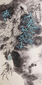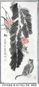 作者 A1612号国画猫 芭蕉叶 趣 63×138cm 作者:郭胜校