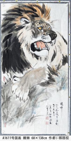 作者 A1611号国画狮子 醒狮 68×138cm 作者:郭胜校