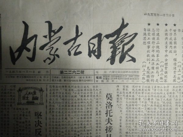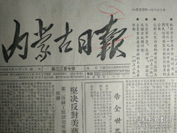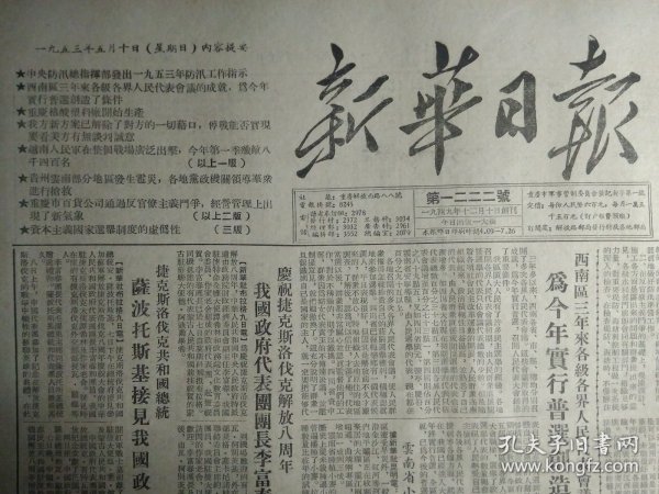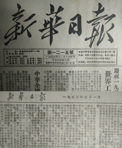出版社 中国人民政治协商会议全国委员会庆祝1954年五一国际劳动节口号。头版