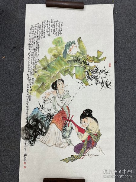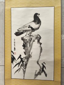作者 2368号卷轴国画花鸟 竹石与鸽子 画心64×38cm 作者:蒋兆和