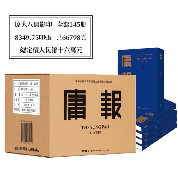 全书共145册,约7万余页,以影印方式收录了《庸报》从1926年创刊到1945年停刊近二十年的全部内容,我们相信,这套书的出版将为中国近代史的研究和现代文学的研究提供重要的一手史料,也在此基础上会产生了一系列相关的学术研究成果。