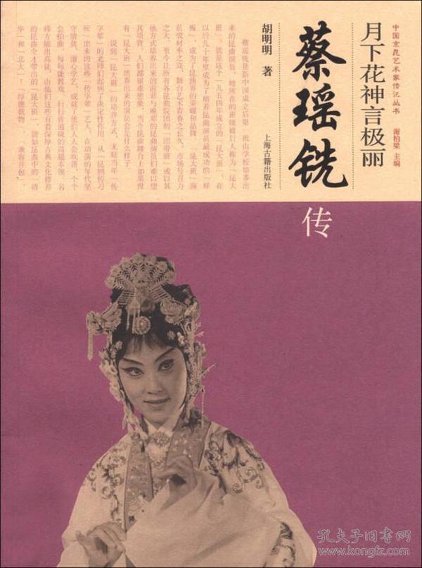 蔡瑶铣(1943-2005),昆剧旦角名家。1954年考入上海华东戏曲研究院昆曲演员训练班(上海戏曲学校“昆大班”),1961年毕业任上海青年京昆剧团演员。1965年从上海戏曲学校调到上海京剧院京剧现代戏《海港》剧组。1978年调上海昆剧团任演员。1979年调到北京任北方昆曲剧院演员。1988年获第五届中国戏剧梅花奖。《月下花神言极丽:蔡瑶铣传》共分八章,此书将蔡瑶铣的人生放到