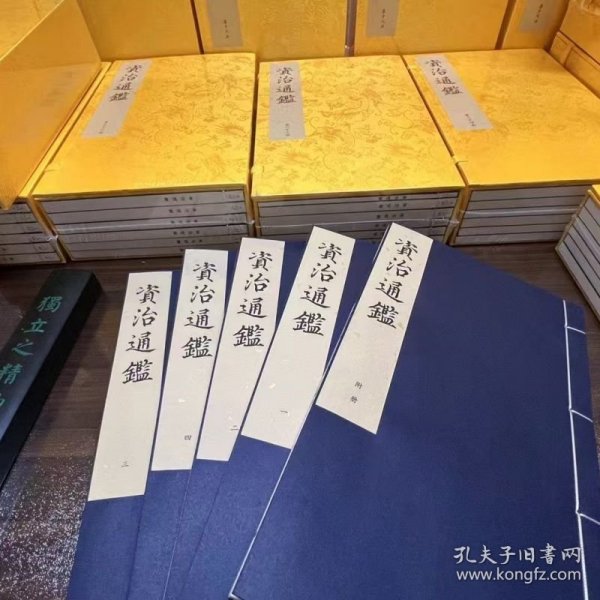 毛泽东藏阅的线装书《资治通鉴》(13函105册)为清同治十年湖北崇文书局仿元刻本开雕,系北宋司马光撰,共二百九十四卷。内容以政治、军事为主,略于经济、文化。取材除十七史以外,尚有野史、传状、文集、谱录等二百二十二种。