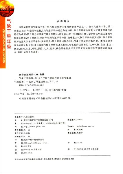 中国气象局兰州干旱气象研究所 编 / 气象出版社 / 2017-12 / 精装