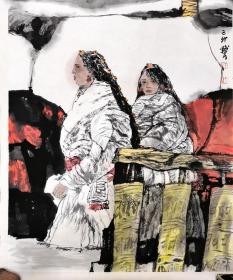 作者 民《藏民》人物画