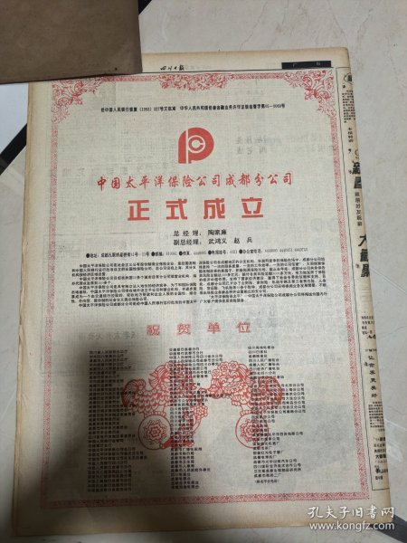 出版社 太平洋保险公司重庆分公司