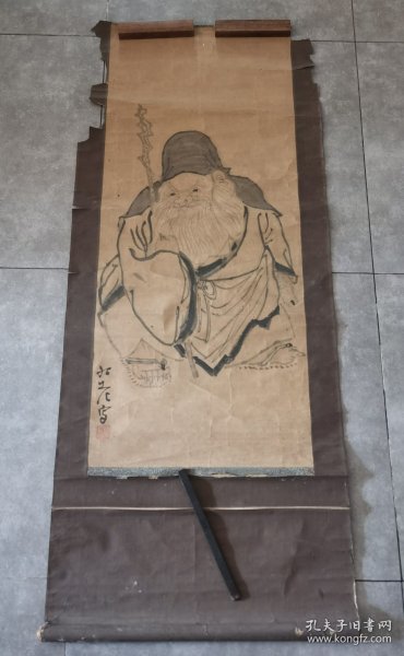 作者 日本回流 日本著名南画家 亭(芜村系)《寿老人》(手绘)纸本立轴