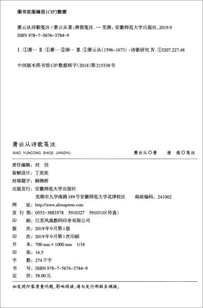 作者:萧从|校注: / 安徽师范大学出版社 / 2019-09 / 平装