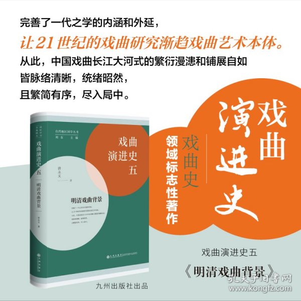 戏曲演进史是曾永义教授以剧种的演进为骨架,参照诸多文献资 料与底本,编成的鸿篇巨制,全面阐述了中国戏曲的演进过程,被认为“完善了一代之学的内涵和外延”,是该领域的标志著作。本书包括两大部分:“金元明北曲杂剧编”之第十四章至十五章以及“明清南杂剧”。各部分具体内容如下:“金元明北曲杂剧编”第十四章“北曲杂剧之余势:明初宪宗成化以前百二十年作家作品述评”、第十五章“周宪王及其诚斋杂