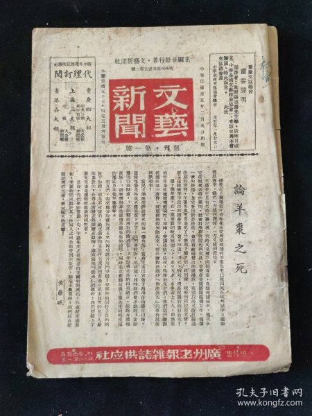 文艺新闻社 编 / 广州书报杂志供应印行 / 民国35年 (1946) / 平装