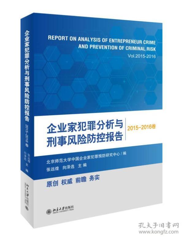 《企业家犯罪分析与刑事风险防控报告》为北京师范大学中国企业家犯罪预防研究中心承接的北师大哲学、社会科学研究报告支持项目,也是北师大与zui高检职务犯罪预防厅的合作项目。共分为企业家犯罪现象描述、企业家犯罪年度"十大案例"评析、企业家犯罪的启示与对策建议三个部分。,本专辑首次以 "中国裁判文书网"上传的刑事案件判决书、裁定书为检索对象,对2013年12月1日至2014年11月30