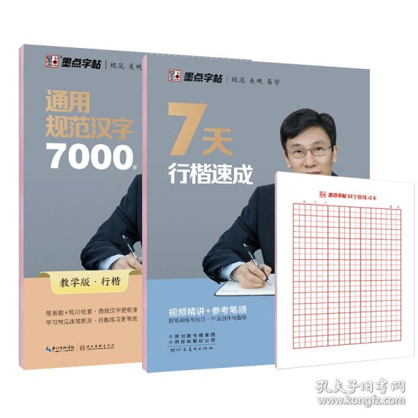 《楷书快写体·技法教程》包含控笔训练、基 础笔画、笔画快写、组合笔画快写、偏旁部首快写 、间架结构等内容,附带视频讲解示范,技法讲解 简单易懂。练习版块设置描红、临写、默写,循序 渐进练习。